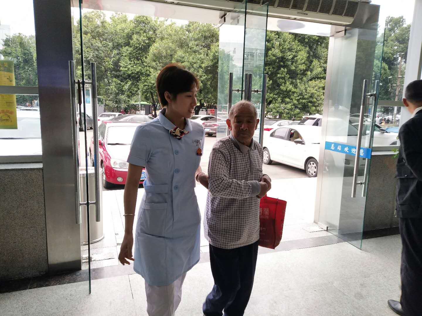 9月14日上???午9:30,总服务台工作人员发现一位老爷爷在门诊大厅来回走动,询问后得知老爷爷是北川安昌镇人,不知道如何乘车回家。
